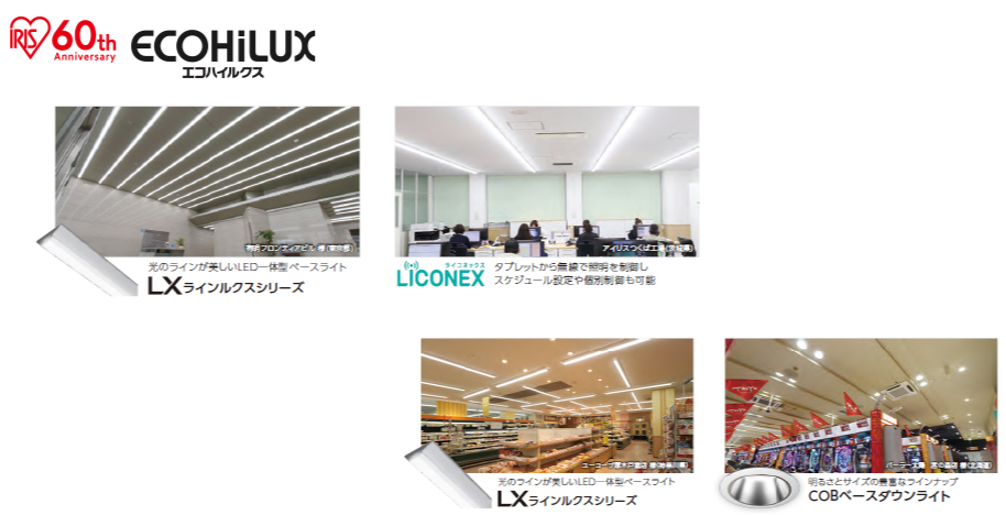 「もっと明るく、もっと省エネに」の想いを込めた「ECOHiLUX(エコハイルクス)」は、ECO(Ecology Economy)+ LUX(光の明るさを表す単位『 lx-ルクス-』にハイスペック(High spec)の『Hi』を組み合わせた造語です。